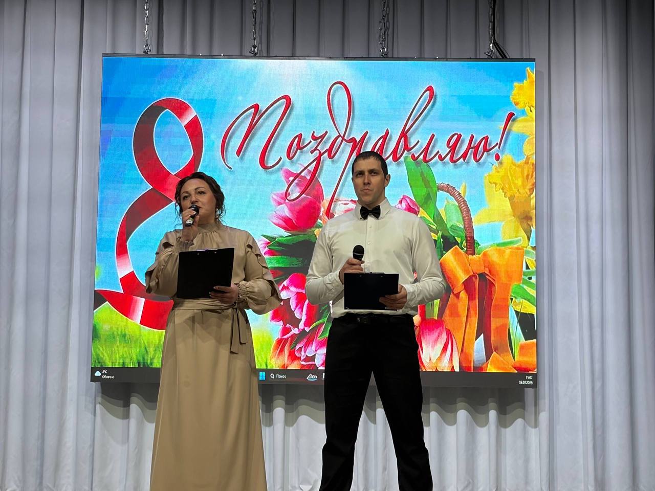 В этот день зрительный зал Дома культуры был наполнен атмосферой весеннего настроения, улыбками, радостью. Ведущие концерта также поздравили всех присутствующих с праздником весны, любви и надежды.