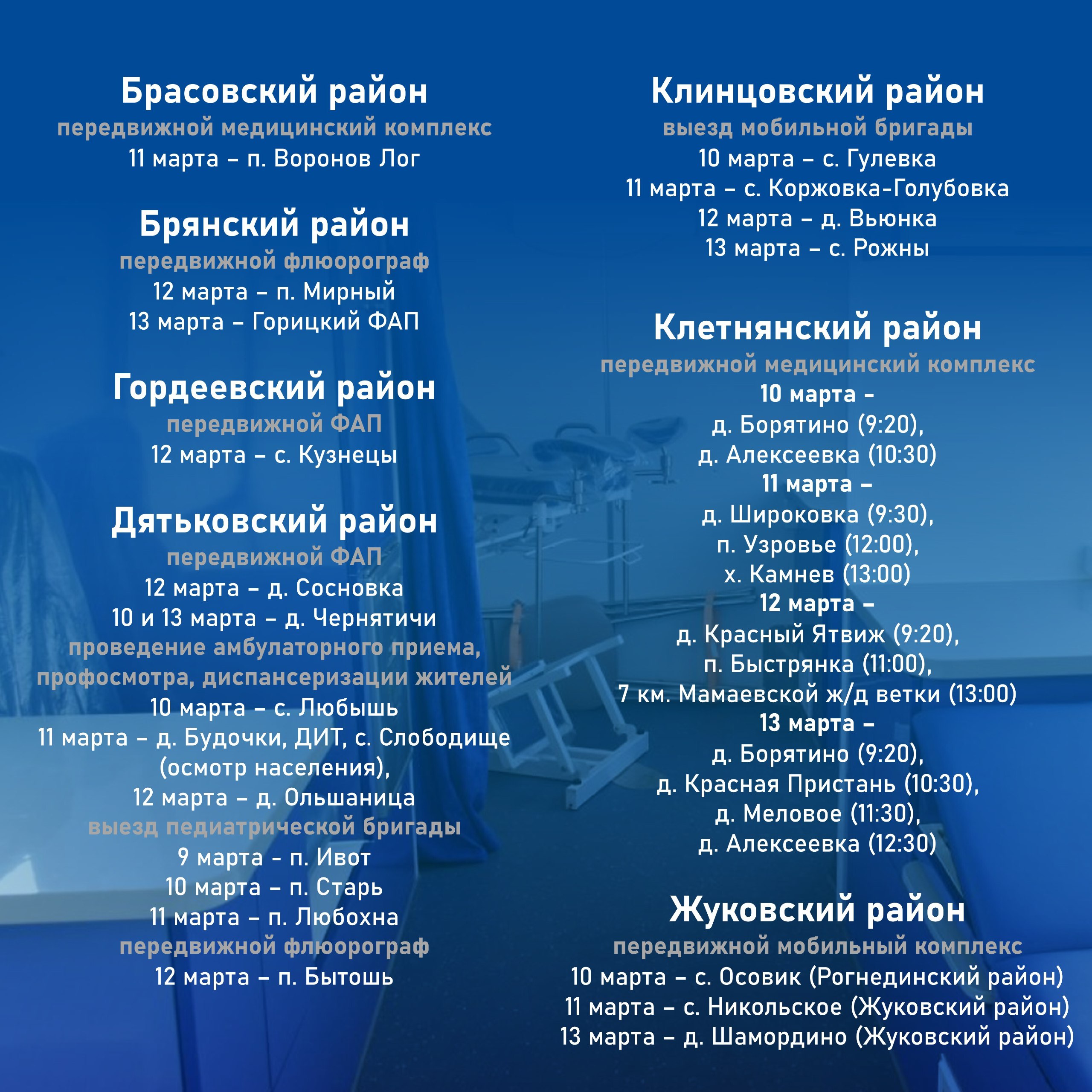 График работы передвижных медицинских комплексов 10 - 15 марта 2026 г
