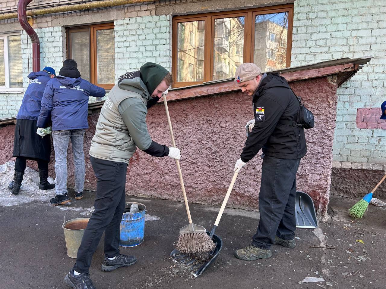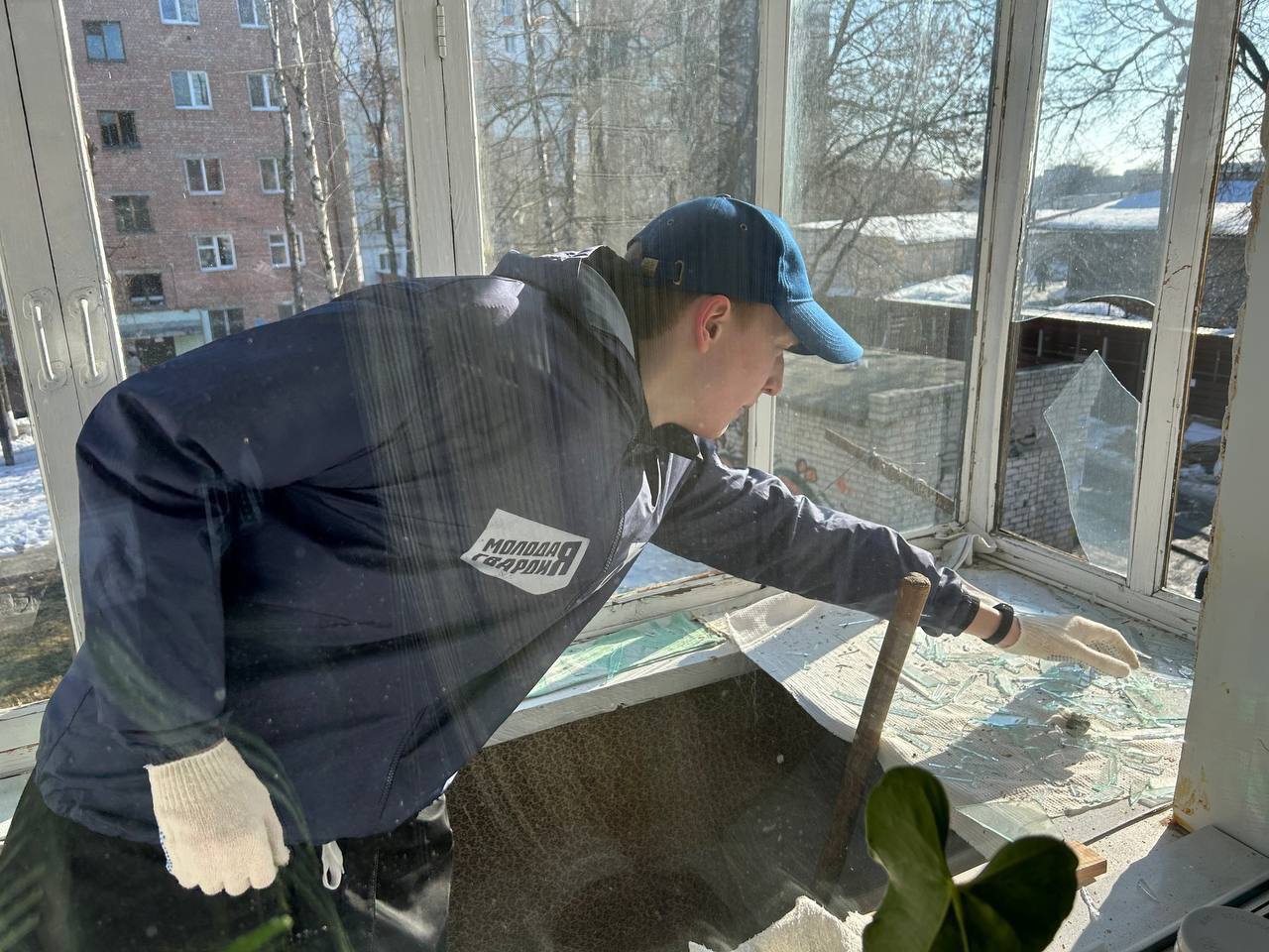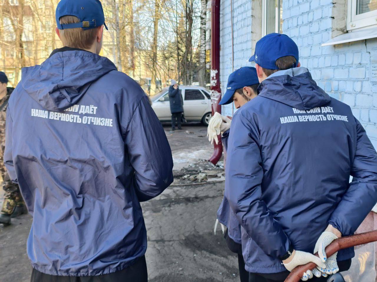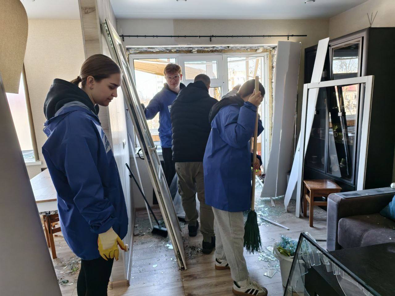 Молодогвардейцы помогают в размещении пострадавших в пунктах временного размещения, раздают предметы первой необходимости, оказывают психологическую поддержку и содействуют городским службам в разборе завалов.