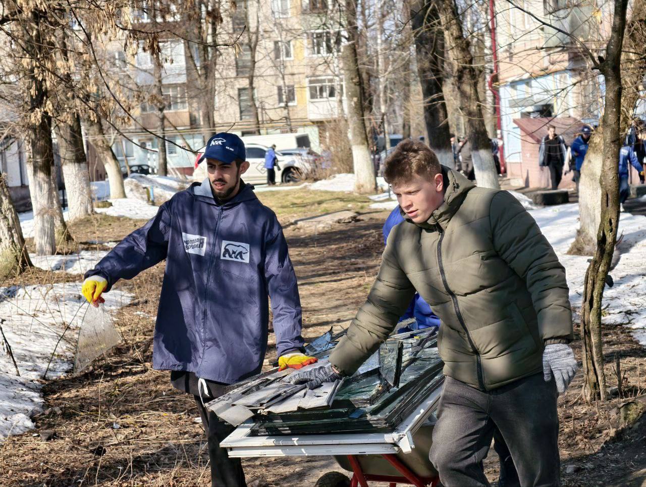 Активисты «Молодой Гвардии Единой России» оказывают помощь жителям города после произошедшего ракетного удара.