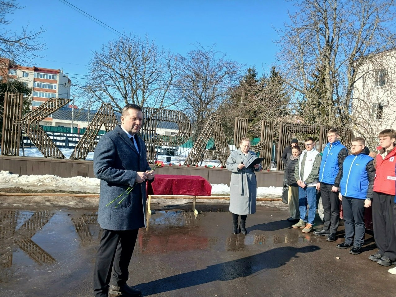 Перед участниками митинга выступил глава администрации Карачевского района Руслан Егоров. Он выразил соболезнования семьям погибших, подчеркнул, что мы обязаны помнить о случившемся и поддерживать друг друга в это трудное время.