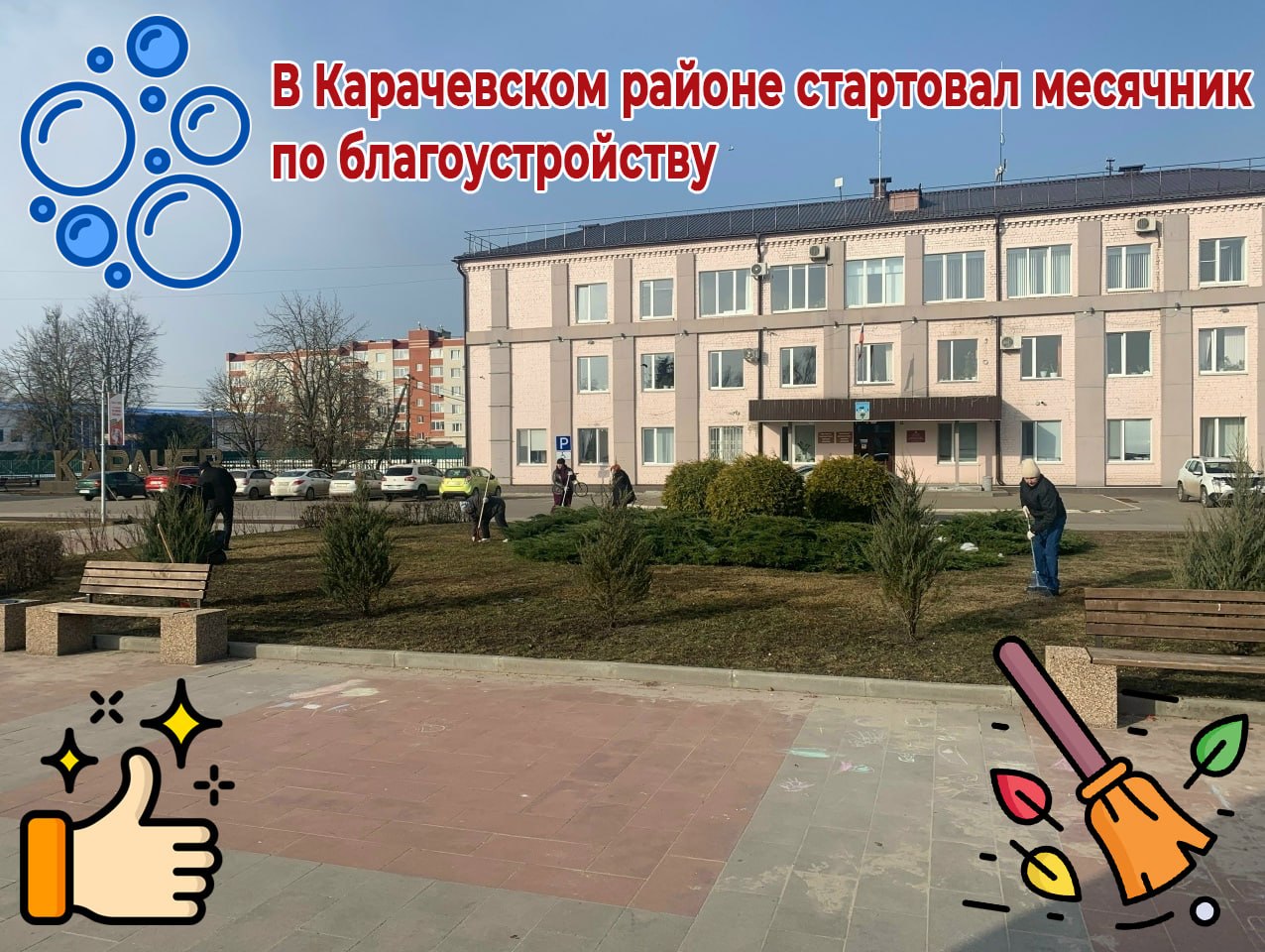Сегодня, 27 марта, в Карачевском районе дан старт традиционному весеннему месячнику по благоустройству. Первый общегородской субботник собрал неравнодушных жителей, сотрудников организаций и учреждений, которые вышли на улицы, чтобы навести порядок после зимы.
