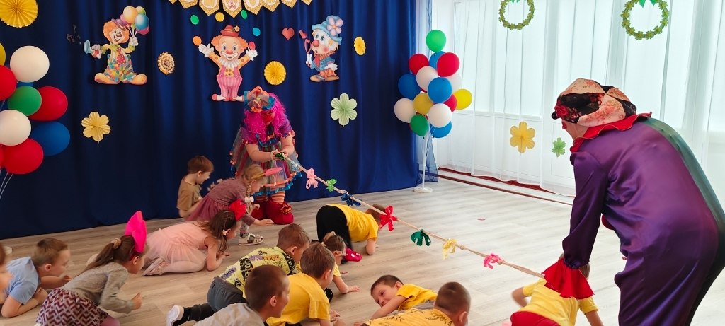 В МБДОУ – детский сад №30 «Звёздочка» было организовано досуговое мероприятие ко Дню смеха 1 апреля «Приключение в Хохотушкино». Дошколята отправились в увлекательное путешествие по весёлым станциям в страну Хохотушкино, где повстречались с озорными клоунами Фантиком и Бантиком, которые принесли ребятам два мешка шуток и смеха.