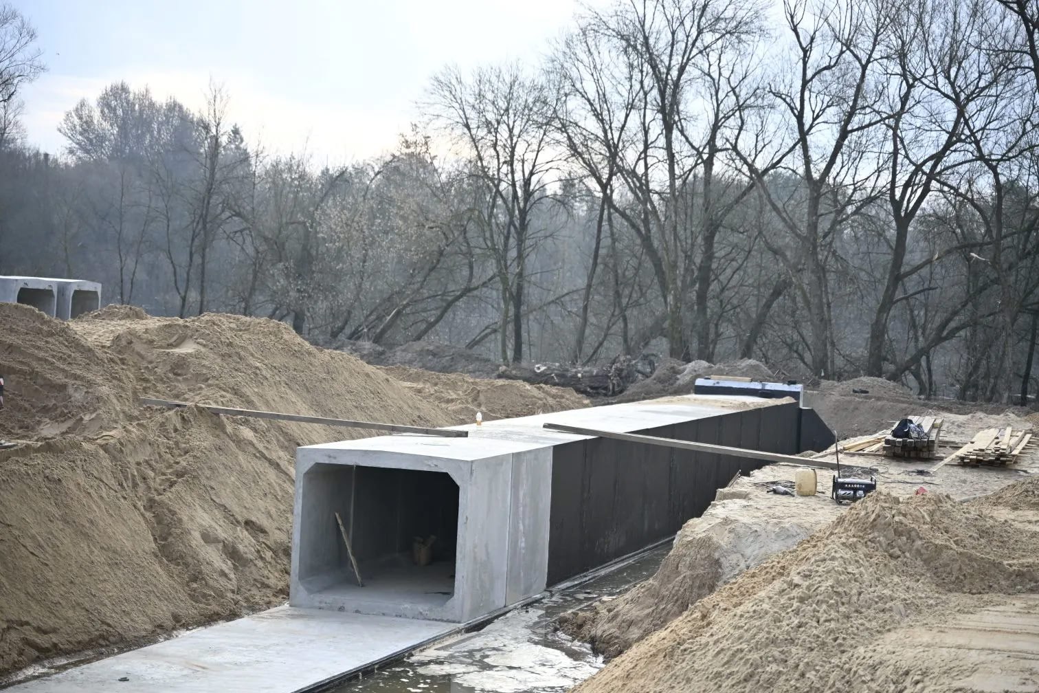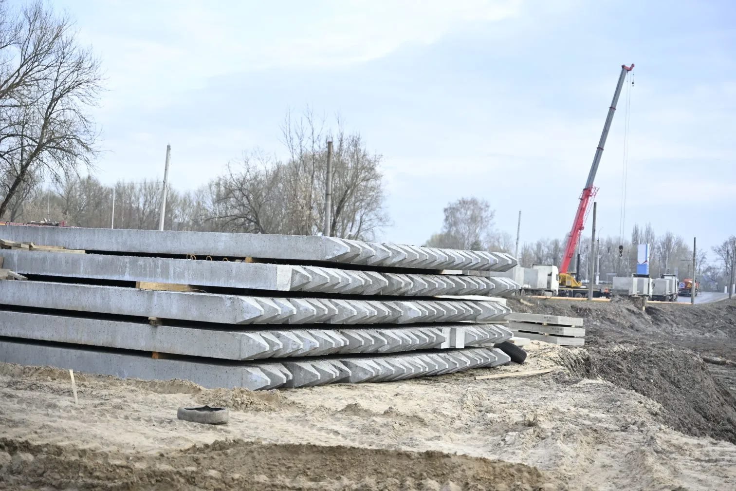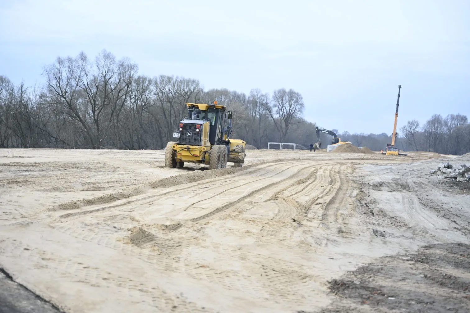 Первый этап строительства начался в прошлом году. Уже проведена большая работа по подготовке основания, расчистке от древесной растительности и кустарников, выполнены работы по устройству насыпи из песка, частично подготовлено свайное поле. Ведутся работы по устройству водопропускных сооружений,