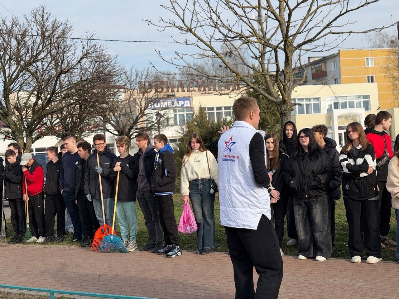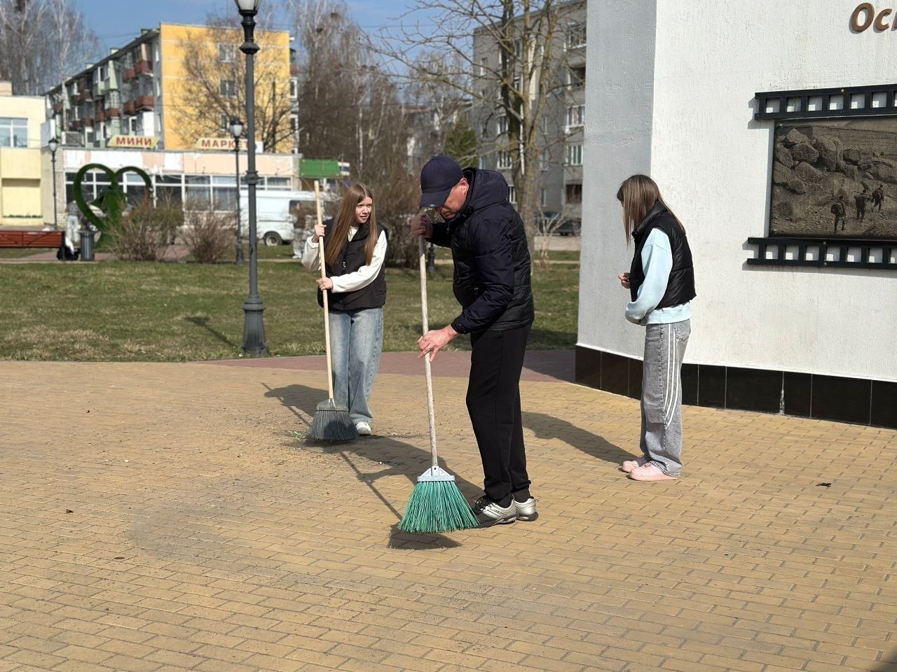 Вместе привели в порядок территорию памятника и прилегающие зоны. Грабли, метлы и мешки для мусора — сегодня главные инструменты уважения к истории.