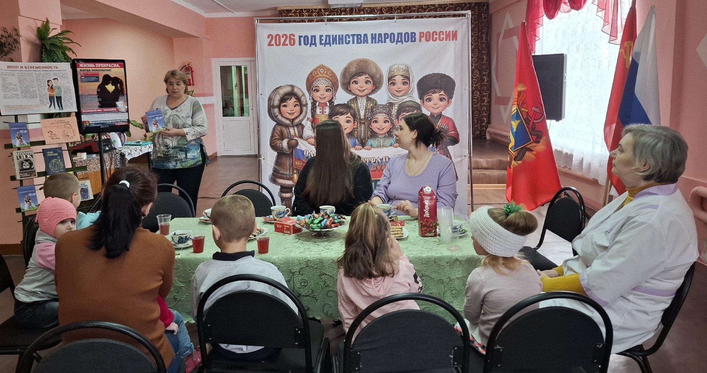 На встрече присутствовала фельдшер Смолевичского ФАПа Романова Тамара Михайловна, которая поделилась своим профессиональным опытом и пообщалась с будущей мамой на волнующие темы. Библиотекарь представила книжную выставку и провела обзор книг для мамы и ребенка.