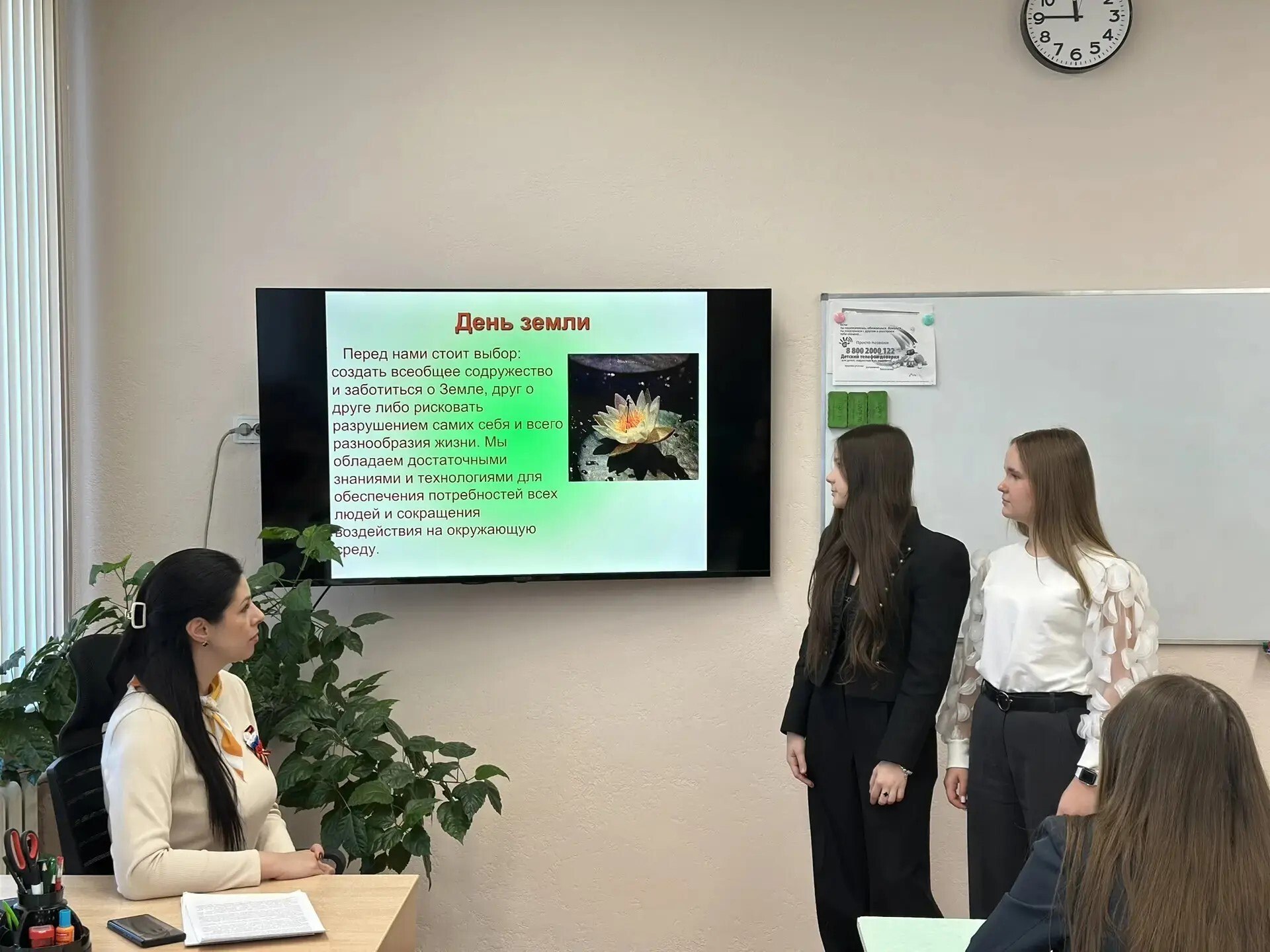 В ходе лектория учащиеся ознакомились с историческими предпосылками возникновения праздника, узнали о ключевых памятных датах, связанных с Днем Земли, а также о существовании собственного флага этого международного дня. Полученные знания способствуют формированию экологической культуры и повышению осведомленности о глобальных природоохранных проблемах.