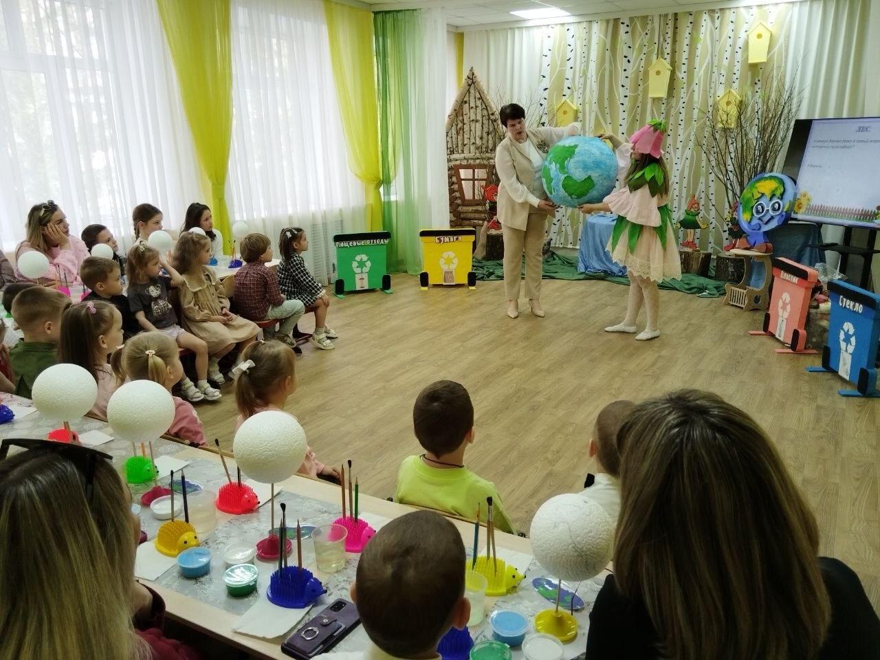 В рамках праздника ребята и родители МБДОУ - детский сад присмотра и оздоровления № 32 "Сказка" узнали о проблемах, с которыми сталкивается наша планета, и о том, как каждый из нас может внести свой вклад в её защиту. А сопровождали ребят - эколята: Умница, Шалун, Тихоня и Ёлочка! Также была организована творческая мастерская, где в атмосфере сотрудничества родители и дошкольники смогли проявить свои таланты и креативность, создавая макеты на тему охраны окружающей среды.