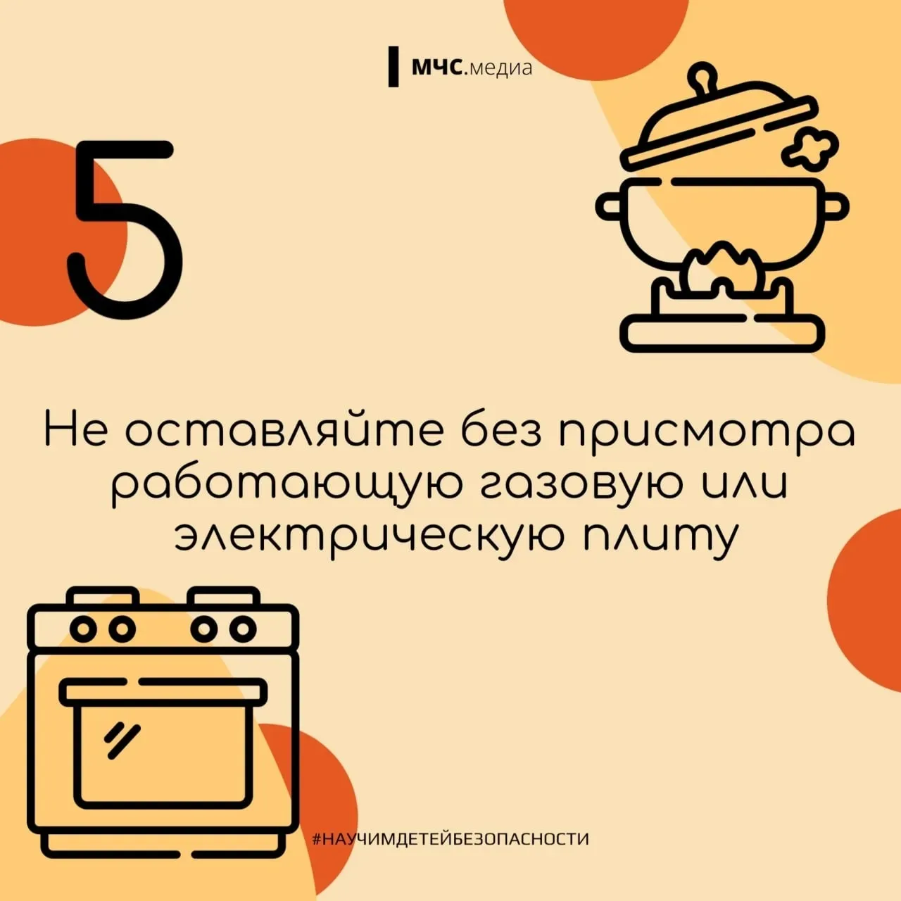 - не оставляй без присмотра работающую газовую или электрическую плиту;