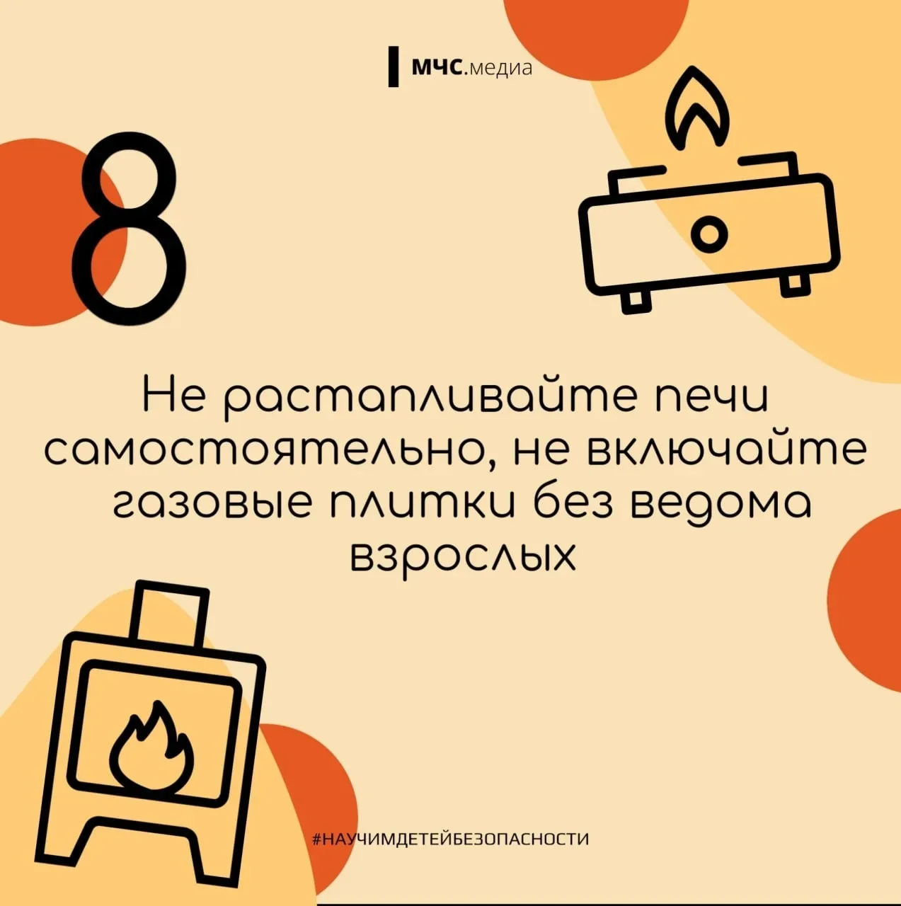- не растапливай печи самостоятельно и не включай газовые плитки без присмотра взрослых;