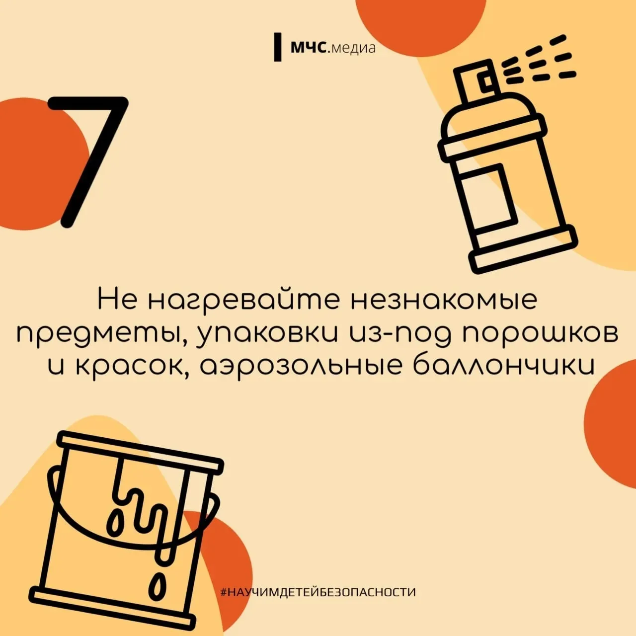 - не нагревай незнакомые предметы, упаковки из-под порошков и красок, аэрозольные баллончики;