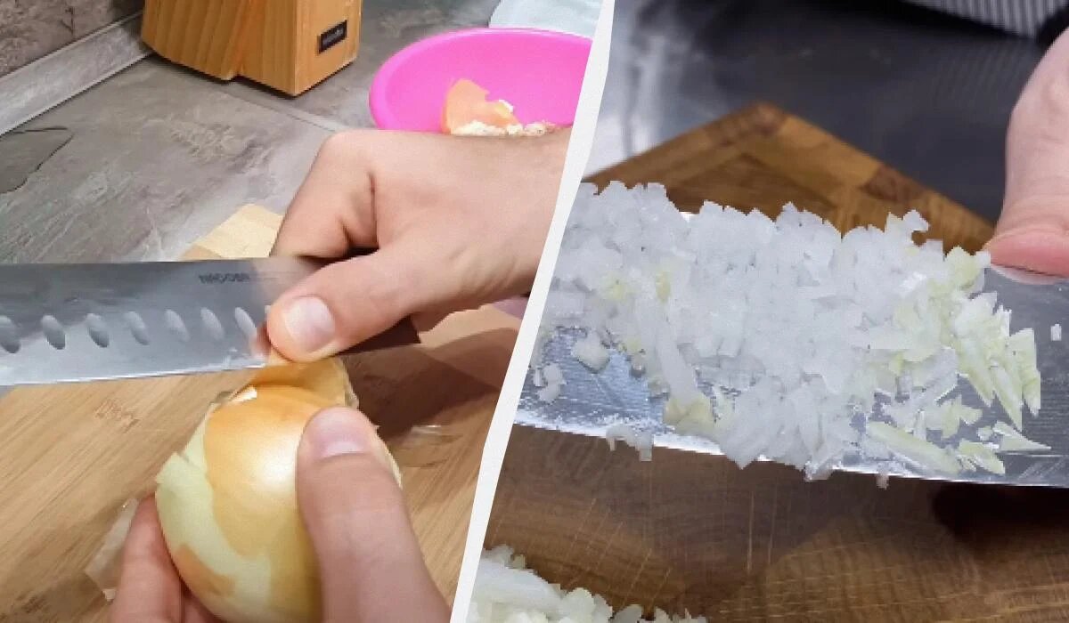 - Если лук вызывает слезы, попробуйте нарезать его под холодной водой или использовать специальные защитные очки.