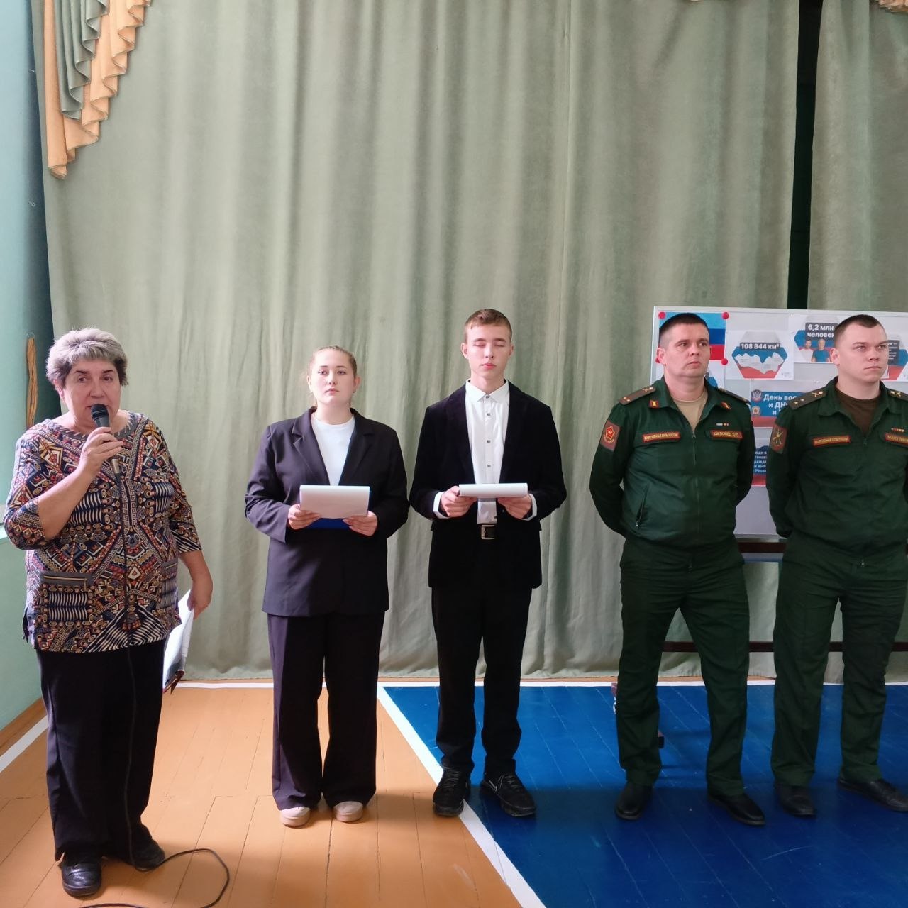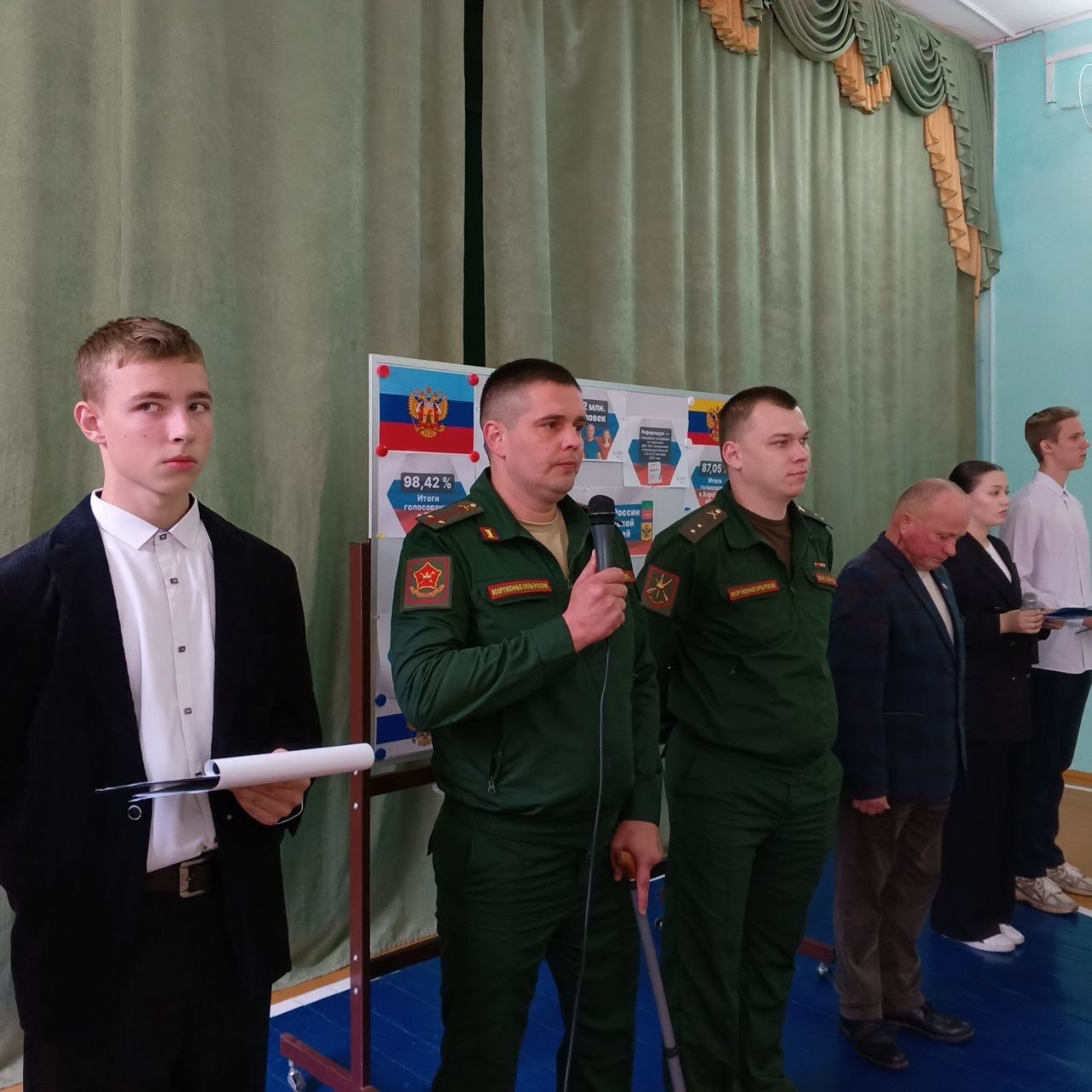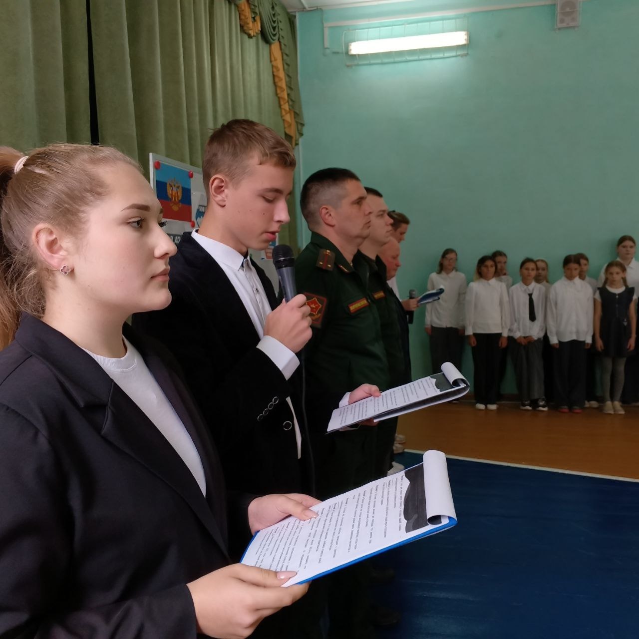 На линейке присутствовали ученики 5-11 классов, юнармейцы , почётные гости-участники специальной военной операции Шкловец Дмитрий Юрьевич и Макулин Кирилл Викторович.