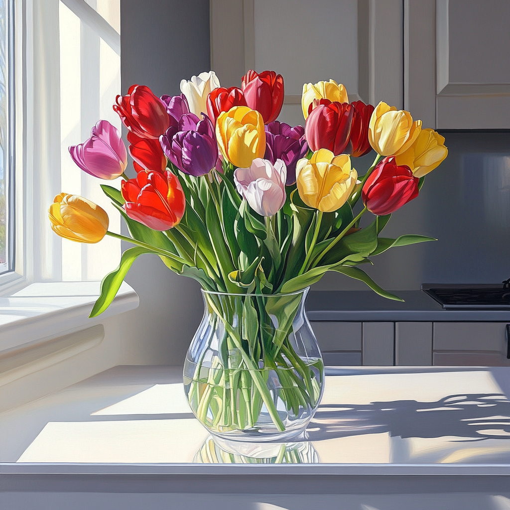 - Идеальное место: Разместите букет в прохладном месте (18–22°C), вдали от прямых солнечных лучей, сквозняков и источников тепла, таких как батареи или кондиционеры.