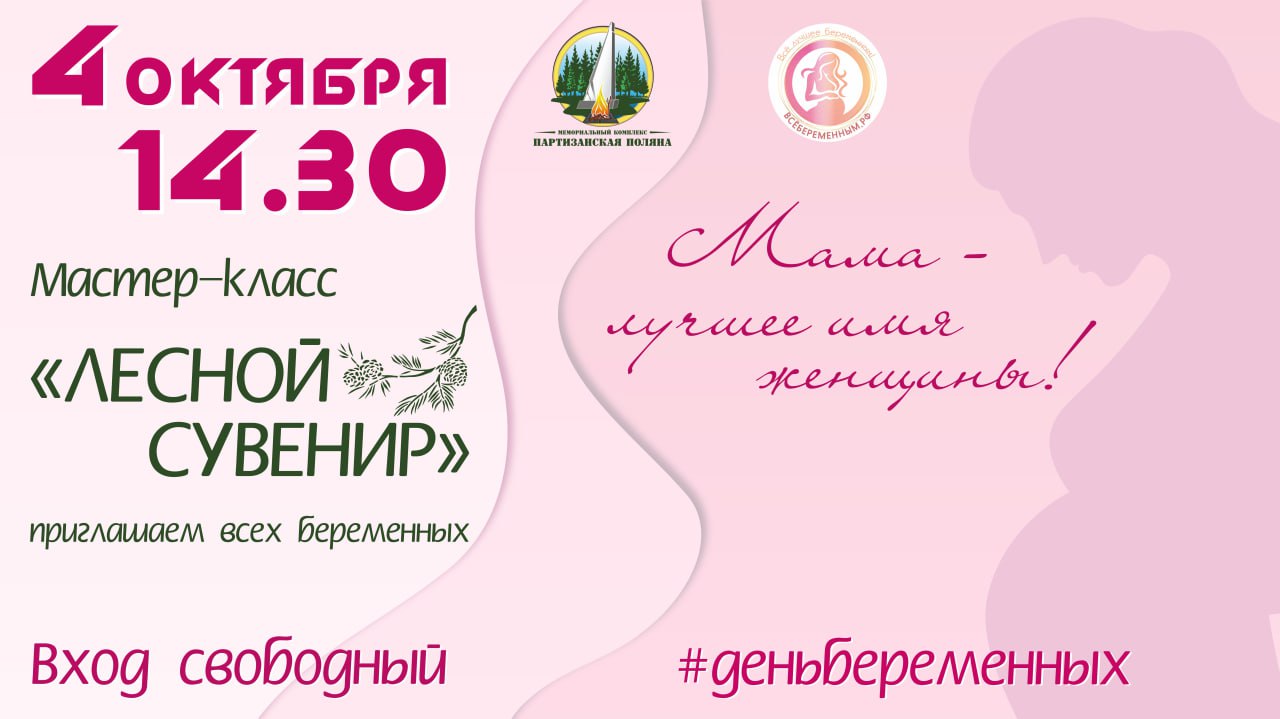 4 октября в 14.30, в преддверии Дня беременных, Мемориальный комплекс «Партизанская поляна» приглашает всех беременных женщин, их дочек и сыночков на мастер-класс «Лесной сувенир».