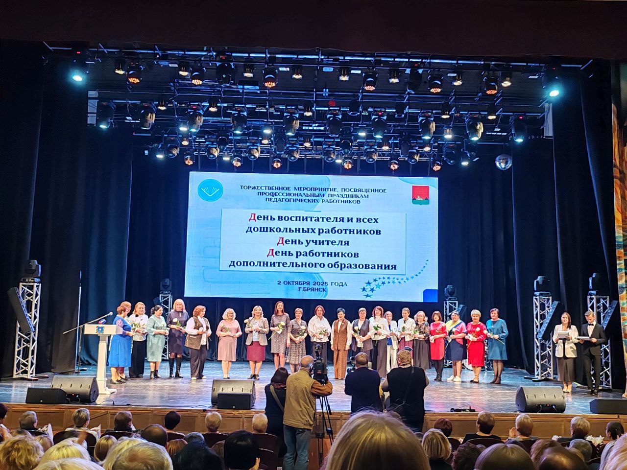 Сегодня на сцене к/з "Дружба" состоялось торжественное мероприятие, посвящённое профессиональным праздникам педагогических работников, Дню воспитателя и всех дошкольных работников, Дню учителя и Дню работников дополнительного образования