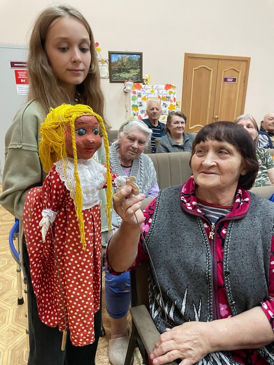 В этот день в актовом зале Сельцовского дома-интерната для престарелых и инвалидов состоялось праздничное мероприятие «Славим праздник золотой». В гости к бабушками и дедушками пришли ребята из образцового театра кукол "Чучелки" имени М. С. Андреева.