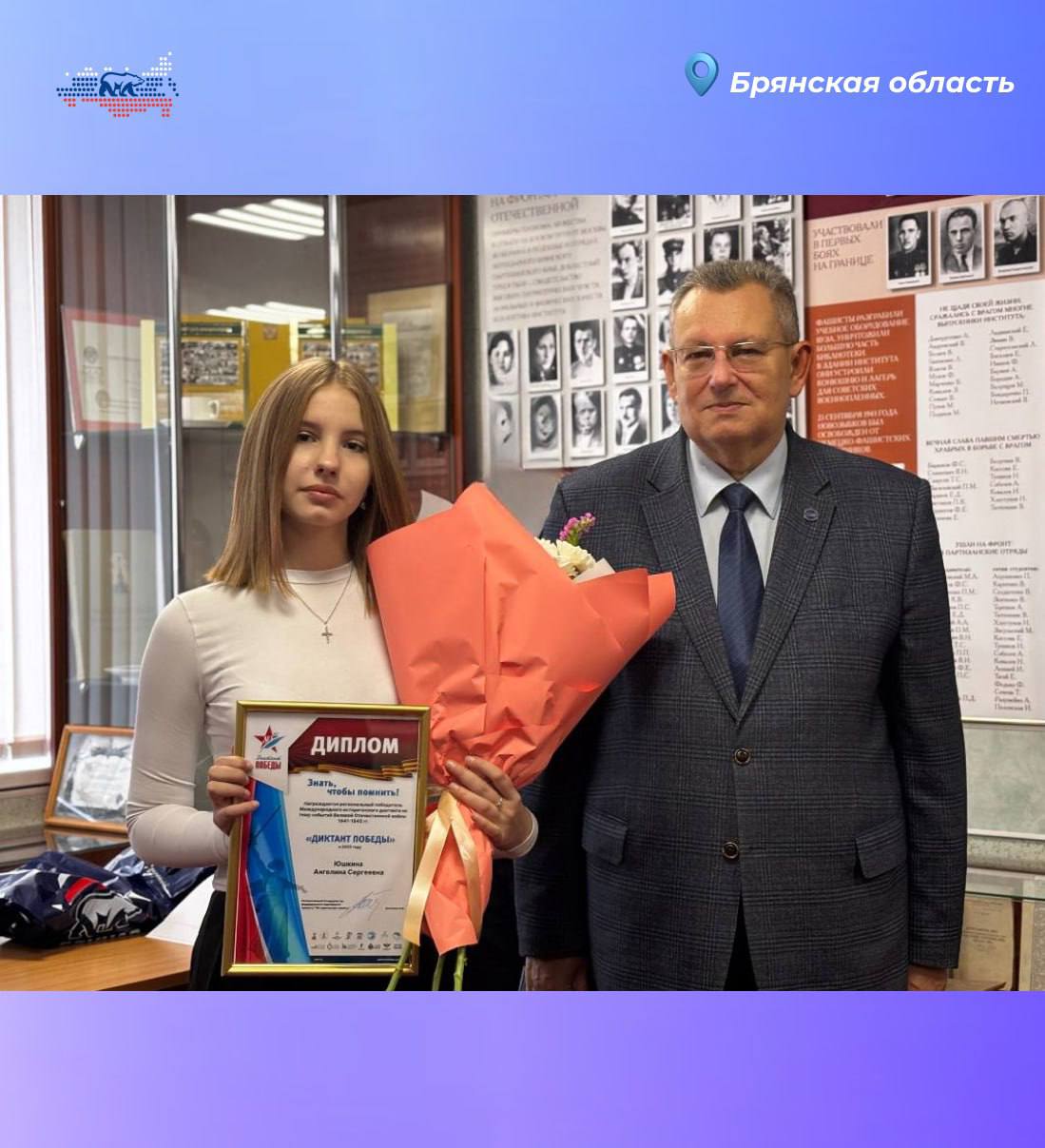 В Брянском государственном университете имени академика И.Г. Петровского прошла торжественная церемония награждения региональных победителей Международного исторического диктанта «Диктант Победы», посвященного событиям Великой Отечественной войны.