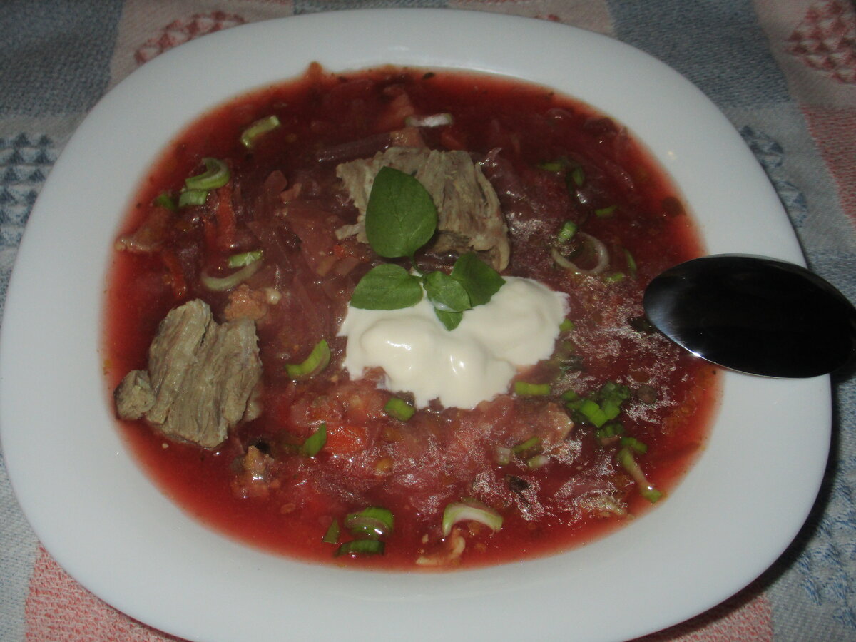 Не забудьте дать борщу настояться под крышкой минут 30, чтобы собрать все ароматы, а затем наслаждайтесь этим необычным и насыщенным блюдом с домашней сметаной и зеленью, что придаст ему свежести и легкости.