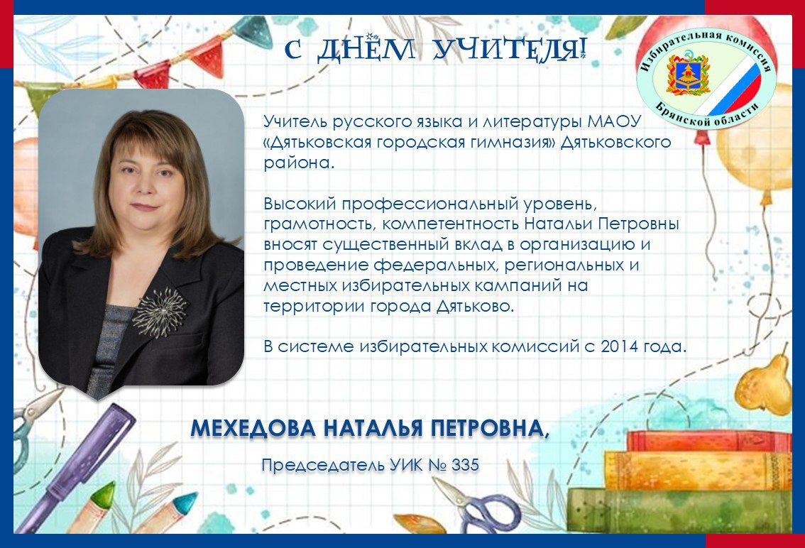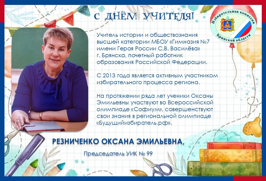 В избирательной системе Брянской области трудится немало учителей и педагогов, преданных своей профессии и делу жизни.