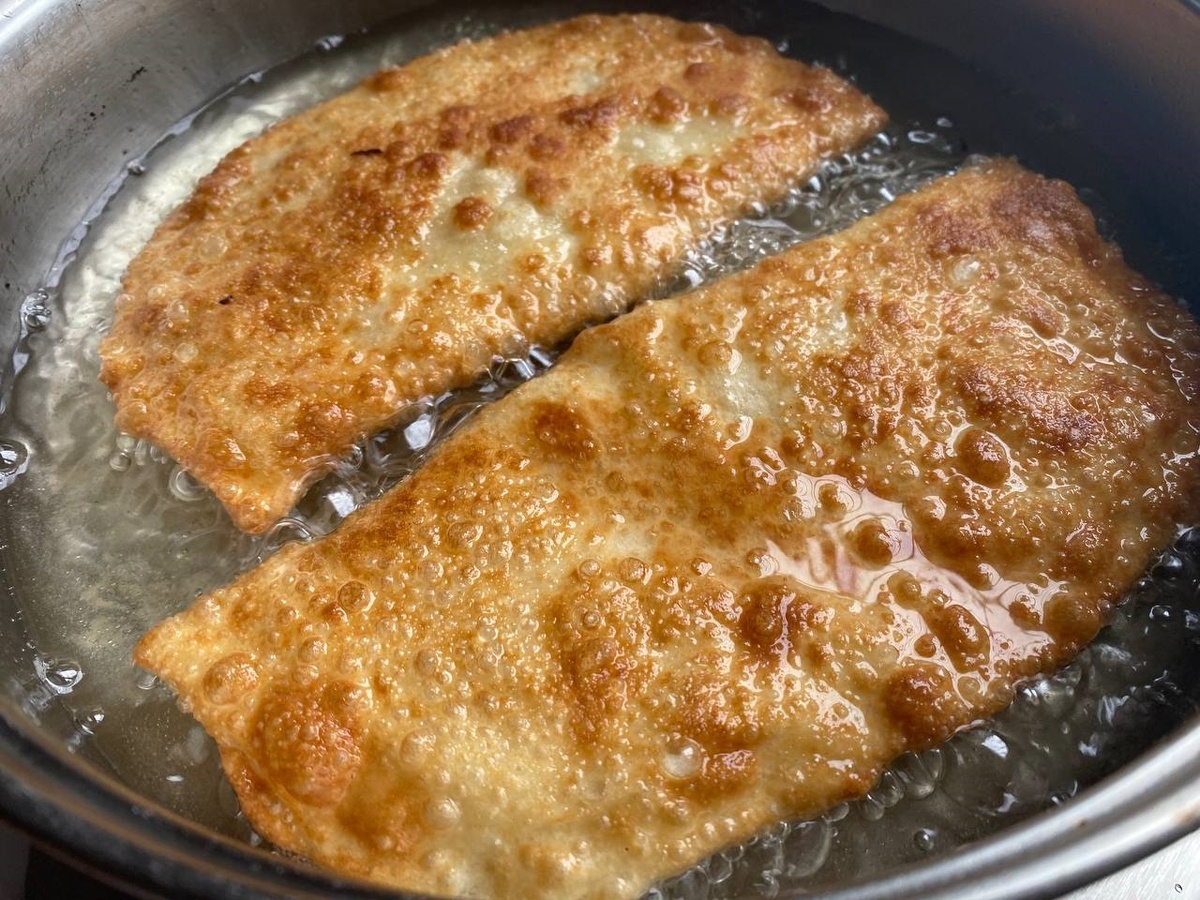 - Жарка на высоком огне: Важно помнить, что при жарке каждые четыре чебурека следует процедить масло. Это поможет избавиться от остатков теста, что сделает каждые новые чебуреки более хрустящими.
