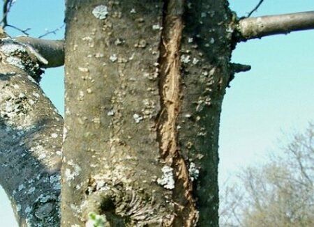 Существует несколько факторов, вызывающих появление трещин на коре яблонь. Во-первых, это может быть результатом вредителей, таких как короеды, которые проникают внутрь дерева и наносят ему серьезный ущерб. Если у вас дома заметили эти насекомые, рекомендуется незамедлительно обработать зараженные участки шприцем с использованием специальных препаратов, например, «Антижук». После обработки следует запечатать ходы садовым варом для предотвращения повторного появления вредителей. Если поражение слишком серьезное, лучше приступить к спилу дерева, чтобы не угрожать остальным насаждениям.
