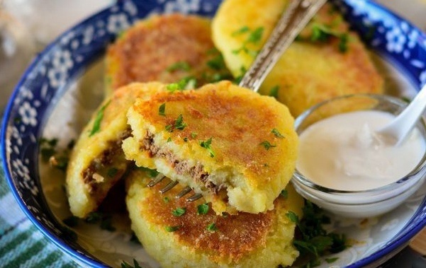 На разогретой сковороде обжарить зразы до золотистой корочки с обеих сторон, около 3-4 минут с каждой стороны. Вот и все — нежные картофельные зразы с печенью готовы. Подавать их лучше всего со сметаной и свежей зеленью для украшения.