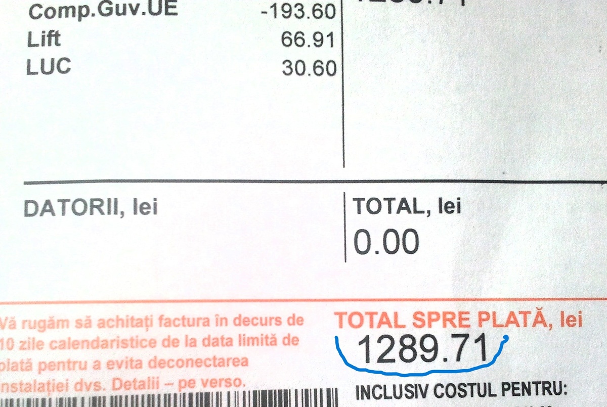Удивительно, но многие пенсионеры предпочитают не получать выплаты на карты, мотивируя это тем, что на рынках платижными картами не расплачиваются. При получении очередной суммы, состоящей из 2274 леев (это около 10800 рублей), реальность расходов заливает тревогой. Напоминает о себе и весомый счет за электричество, который в этот раз составил 1290 леев (6140 рублей). Большая часть пенсии уходит на оплату коммунальных услуг, оставляя пенсионеру всего лишь 974 лея для покупок.