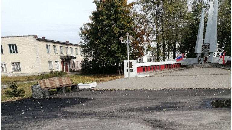 Подрядчик заасфальтировал территорию. На улице Дзержинского установлены новые скамейки и урны.
