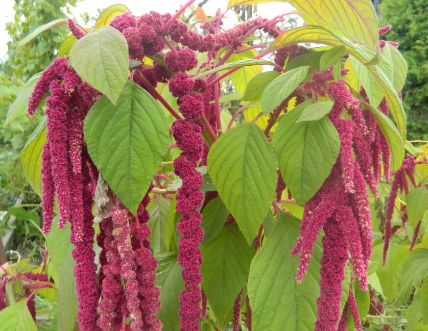 Амарант – это роскошное и впечатляющее растение, обладающее широкими ветвями и крупными зелеными листьями. Соцветия этой культуры поражают разнообразием: от высоких раскидистых метелок до кистей, свисающих до самой земли, напоминающих гирлянды. Цветовая палитра амаранта варьируется от глубокого бордового до бронзового и зеленого, сообщает Дзен-канал "Антонов сад - дача и огород".