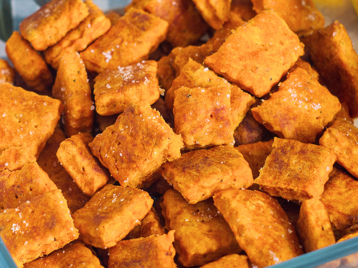 Готовые крекеры можно оставить остывать на листе или решётке, а хранить их в закрытой банке — они останутся свежими до недели. Чаще всего, однако, не доживают до этого срока — их моментально расхватывают!
