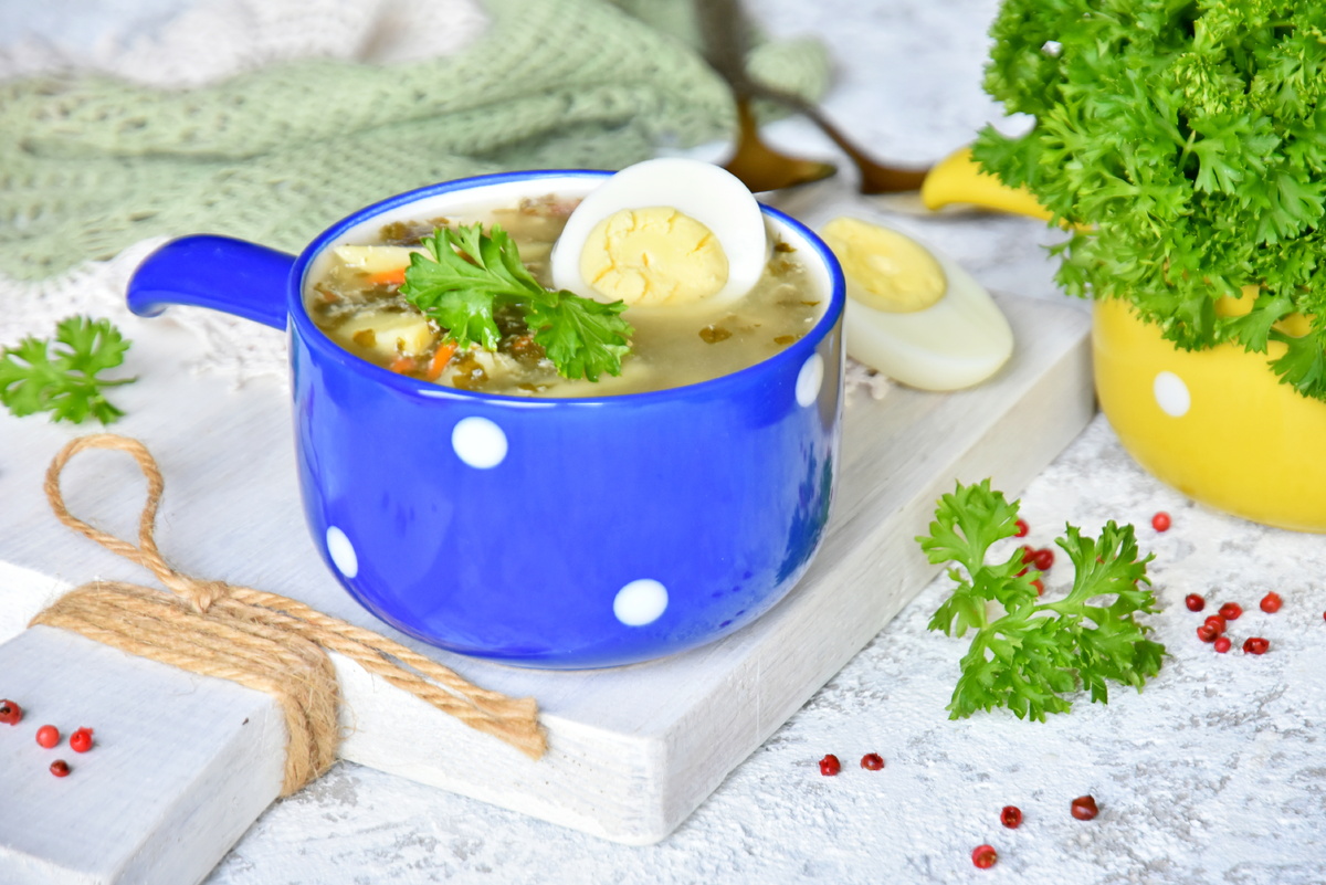 Снимите кастрюлю с огня и закройте крышкой, дайте настояться несколько минут. Подавайте горячие зеленые щи со сметаной и половинкой отварного яйца. Этот суп станет отличным вариантом для весеннего обеда, наполняя вашу тарелку свежестью и жизненной силой.