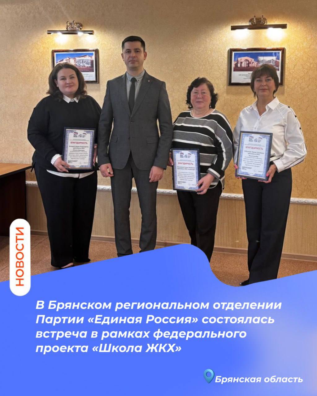 В Брянском региональном отделении Партии «Единая Россия» состоялась встреча в рамках федерального проекта «Школа ЖКХ»