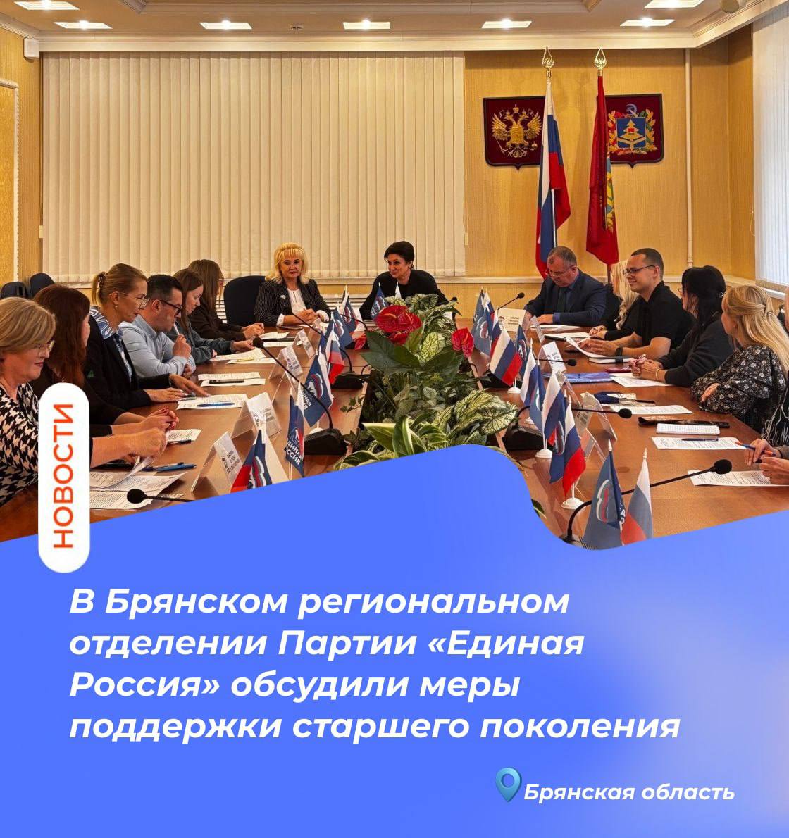 В региональном отделении Партии «Единая Россия» состоялось заседание общественного совета партийного проекта «Старшее поколение», посвящённое вопросам улучшения качества жизни пожилых граждан в Брянской области.