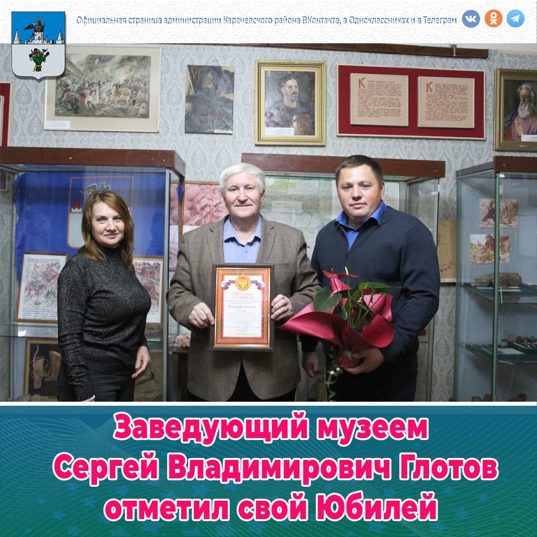 В залах карачевского краеведческого музея 8 октября царила особая атмосфера — не музейная тишина, а теплое, живое общение, наполненное улыбками и воспоминаниями. Свой Юбилей отмечал человек, который уже 18 лет является душой этого места — заведующий музеем Сергей Владимирович Глотов.