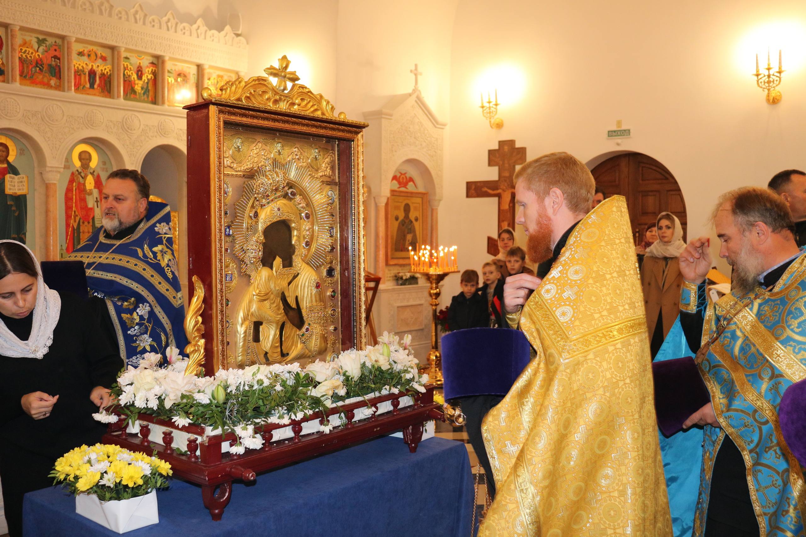 У ворот храма чудотворный образ встречали: благочинный Стародубского церковного округа протоиерей Олег Мартынюк, клирики благочиния, гости, прихожане храма, а также многочисленные верующие. Под колокольный звон был совершён крестный ход с иконой вокруг Дома Божия. Затем образ разместили в центре храма. У чудотворной иконы был отслужен молебен с акафистом Феодоровской иконе Божией Матери, который возглавил благочинный Стародубского церковного округа. После акафиста верующие смогли с молитвой преклониться к святыне. Также ночью в храме была отслужена Ночная Литургия, которую возглавил благочинный Стародубского церковного округа протоиерей Олег Мартынюк в сослужении клириков благочиния и гостей. За Литургией верующие сподобились причаститься Святых Христовых Таин. По отпусте Литургии перед чудотворным образом были пропеты тропарь, кондак и величание Пресвятой Богородицы.