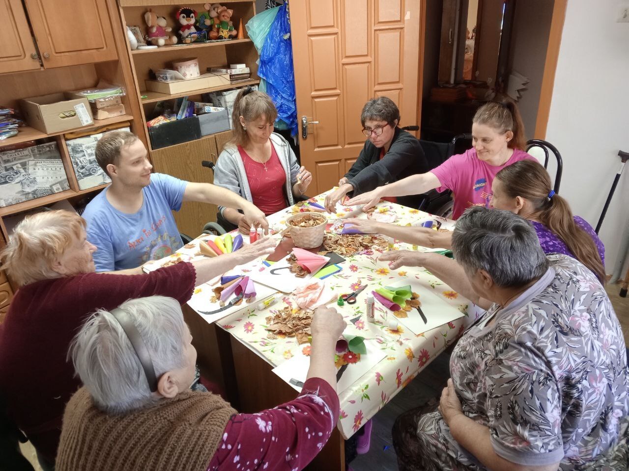 В Дарковичском доме-интернате для престарелых и инвалидов на мастер-классе участники создали красивые и оригинальные зонтики, сочетая экологичные материалы и креативные техники. Все с удовольствием окунулись в мир красок, текстур и форм, используя опавшую листву, бумагу и немного фантазии.