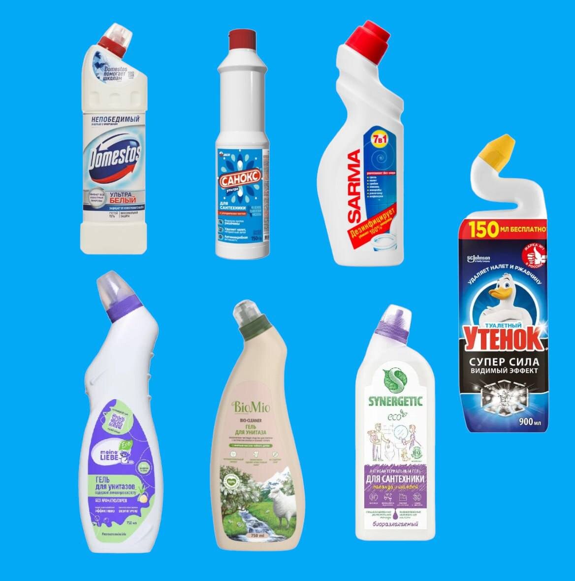- Domestos: Идеально удаляет загрязнения и эффективно убивает микробы благодаря гипохлориту натрия в составе.