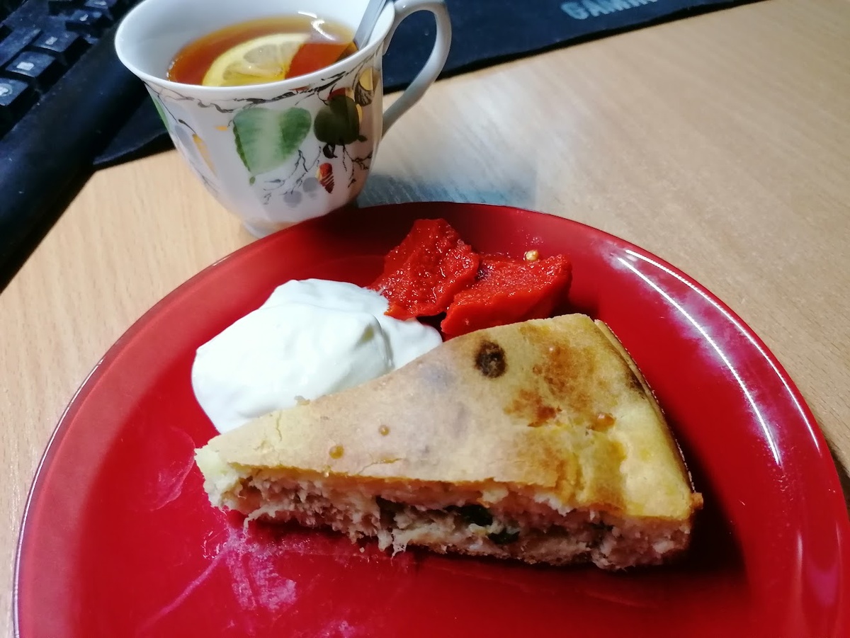 Сочетание отварного куриного мяса, вяленых томатов и маслин создаёт уникальный микс сладости и солоноватости. Эта начинка идеально вписывается в заливное тесто и добавляет нотку средиземноморской кухни. Не забудьте, что её можно замораживать — это отличный вариант для быстрого ужина.