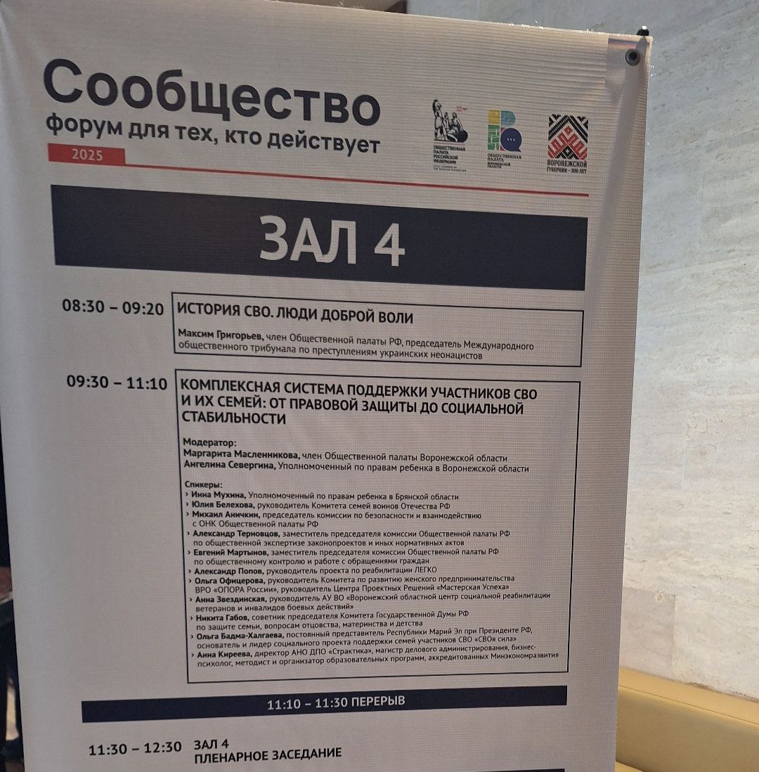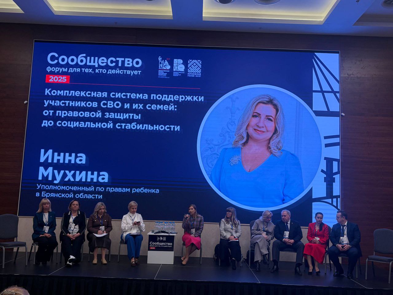 Выступила на форуме Общественной палаты Воронежской области «Сообщество» по вопросам поддержки семей участников СВО.