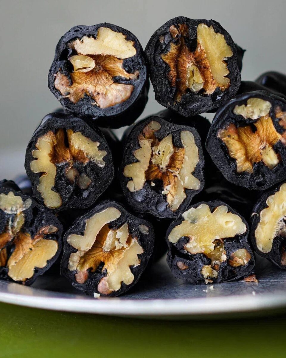 Грузинская чурчхела, традиционное лакомство, удивила своим новым вариантом в ресторане Nene. Теперь это десерт приковывает взгляд не только своим вкусом, но и внешним видом. Представленная версия является абсолютно черной, что делает ее настоящим гастрономическим хитом.
