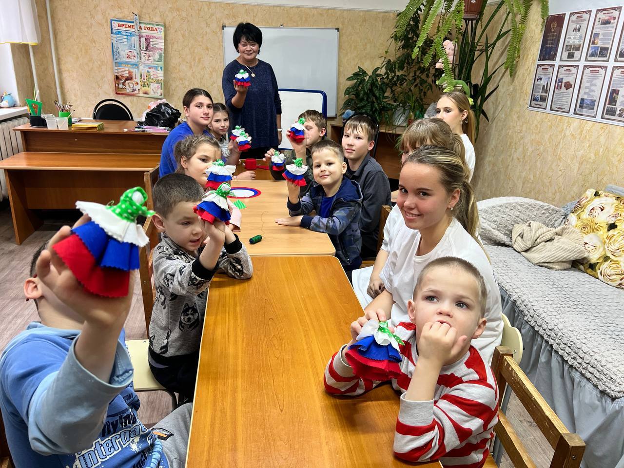 Вместе с педагогами Центра «ВЕГА» было организовано увлекательное мероприятие — мастер-класс по созданию традиционной русской тряпичной куклы «Россиянка».