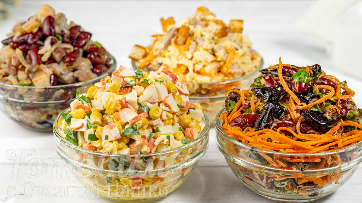 Скоро праздник, и нет времени на длительные приготовления? Не беда! Мы собрали для вас четыре салата, которые не только легко готовятся, но и приятно удивляют своим вкусом. Эти рецепты — настоящая находка для занятых хозяев. Порадуйте своих гостей салатами с оригинальным вкусом, которые станут изюминкой любого стола, пишет Дзен-канал "Готовим с Оксаной Пашко".
