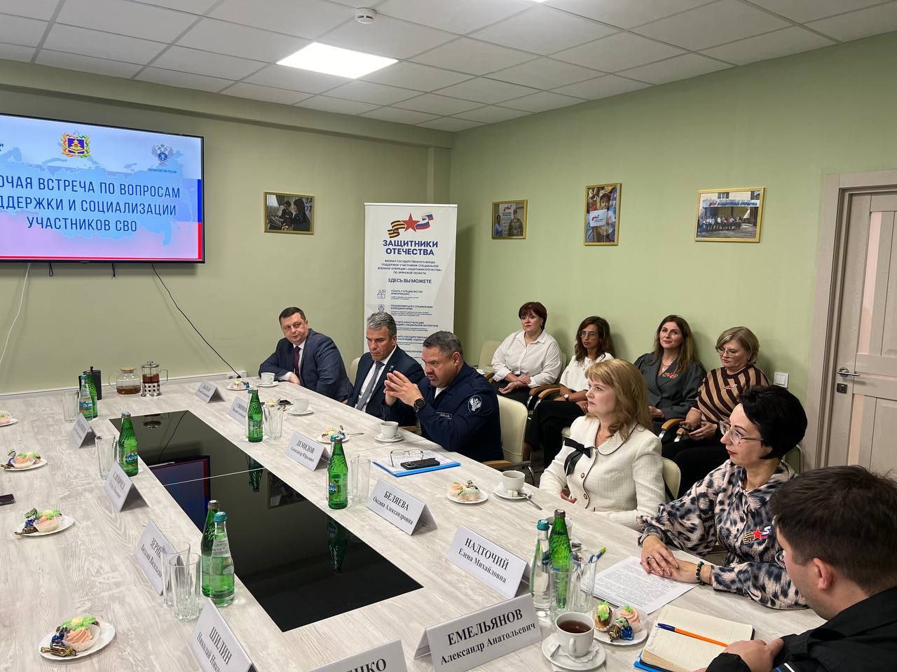 На базе регионального филиала фонда "Защитники Отечества" прошла рабочая встреча Александра Демидова с врио заместителя Губернатора Брянской области Виталием Свинцовым, руководством фонда и ветеранами специальной военной операции.
