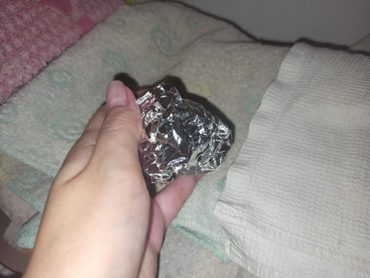 - Сформируйте фольговый шарик: возьмите небольшой кусочек алюминиевой фольги и скатайте его в компактный шарик диаметром 5–7 см.