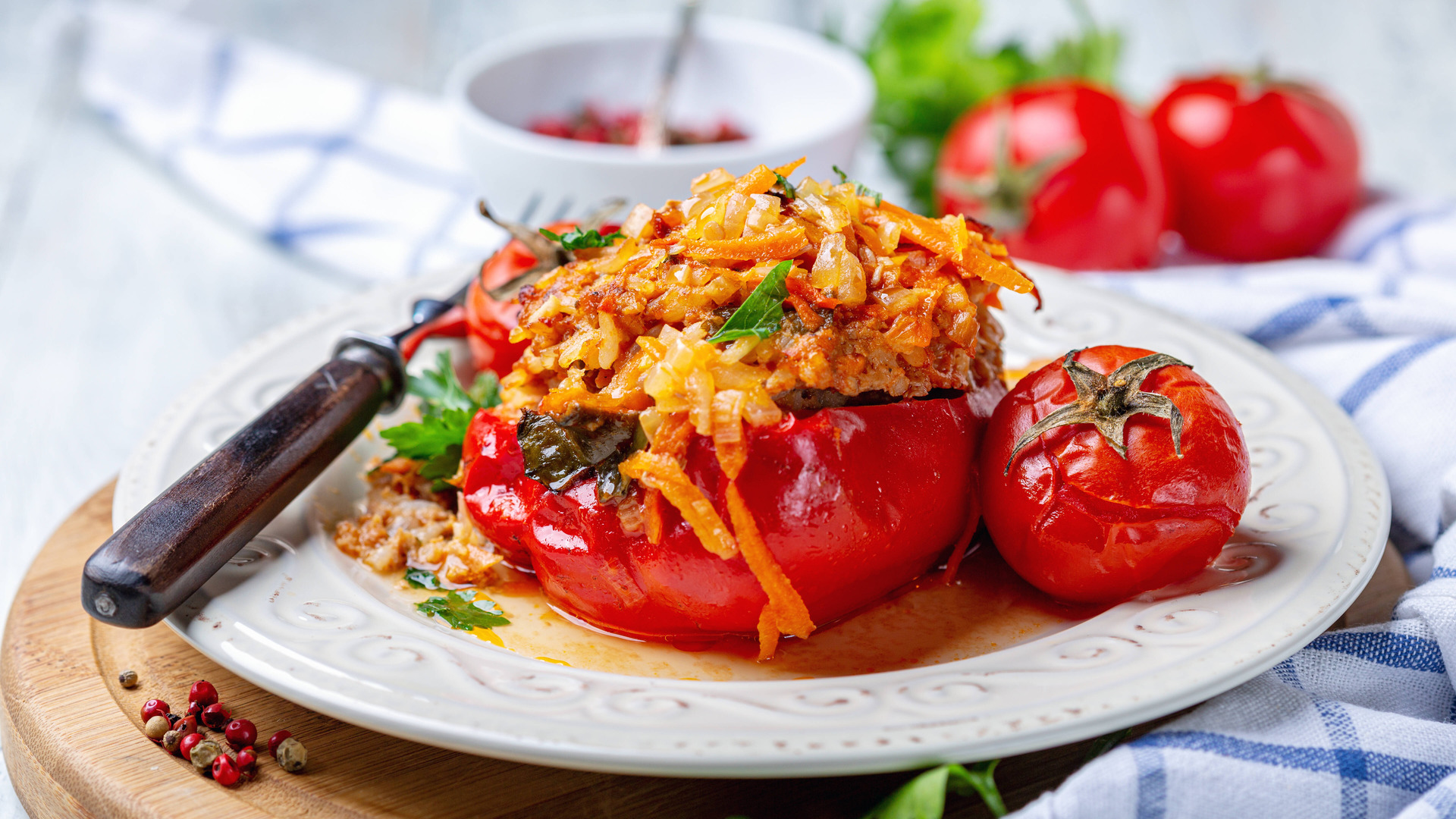 Закуска из разряда «гости на пороге» спасет не только ужин, но и станет отличным перекусом для просмотра фильма. Приготовление полезных и горячих фаршированнных перцев не займет много времени, при этом блюдо понравится даже тем, кто сидит на диете.