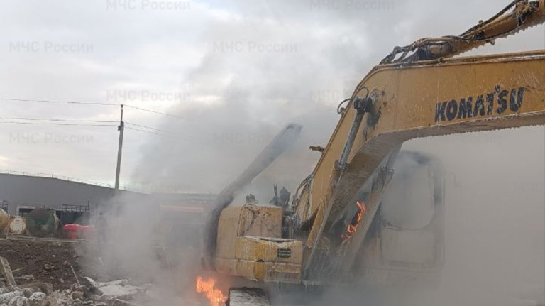 На Брянщине пожарные спасли от огня экскаватор-погрузчик