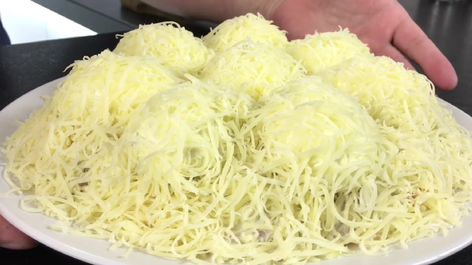 Слегка смажьте тарелку майонезом и выложите слоями картошку, морковь и курицу. После каждого добавляйте немного соуса. Сверху поместите яйца желтками вниз, добавьте еще немного майонеза и посыпьте сыром, советует «Лайфхакер». Праздничный «Сугроб» готов!