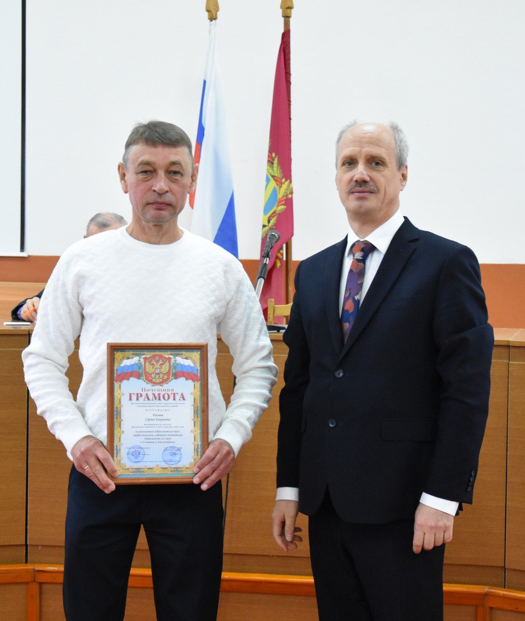 В начале заседания глава Дятьковского района Константин Кононов вручил депутату районного Совета народных депутатов седьмого созыва Сергею Егоровичу Евсееву почетную грамоту, за многолетний добросовестный труд, профессионализм, активную депутатскую деятельность и в связи с 55-летием со Дня Рождения.