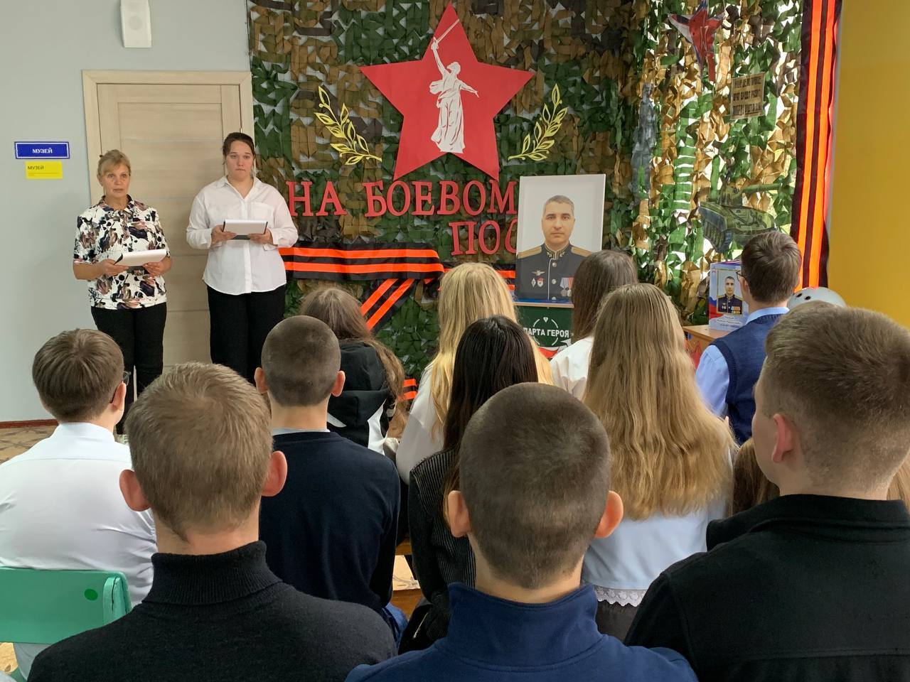 Руководитель музея Винникова Алла Алексеевна провела Урок Памяти «Горжусь тобой, солдат России», посвященный Хасанову Алексею Нарзуллаевичу, выпускнику школы, погибшему в ходе СВО. В ходе мероприятия обучающимся рассказали о жизни и боевом пути гвардии подполковника Хасанова А.Н.